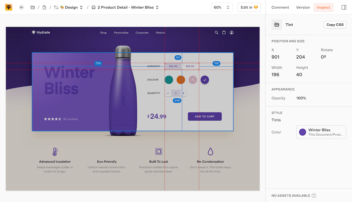 Stay pixel perfect every time. Select a layer, hover over another, and we’ll show you the exact measurements for spacing between layers.